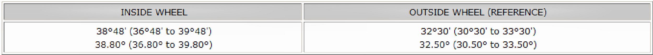 Wheel Turning Angle:
