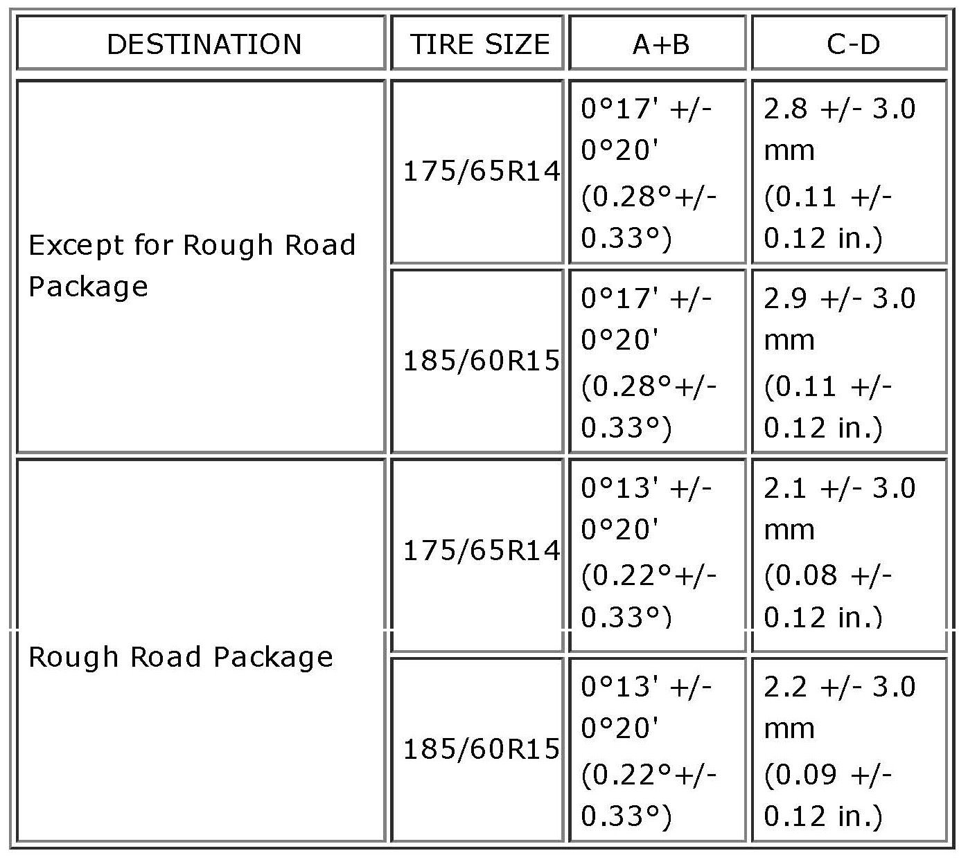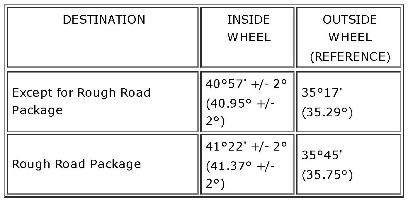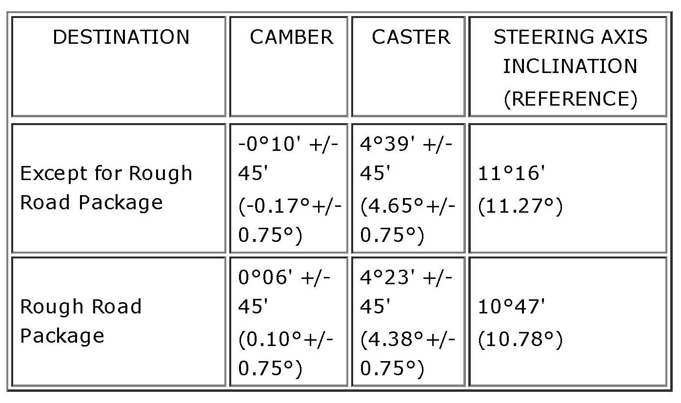 Front Wheel Alignment Specifications (Unloaded Vehicle)