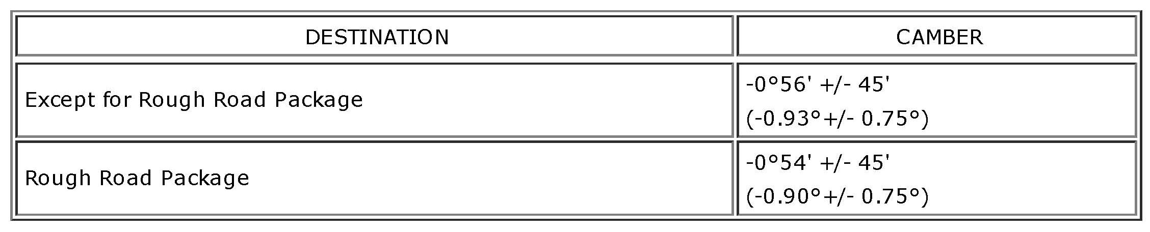 wheels is 30' (0.5�) or less for both the camber and