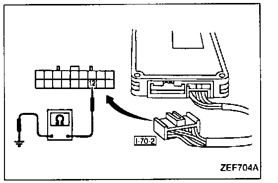 1. Check the continuity between the body and terminal (12) of instrument harness connector [I-70-2].