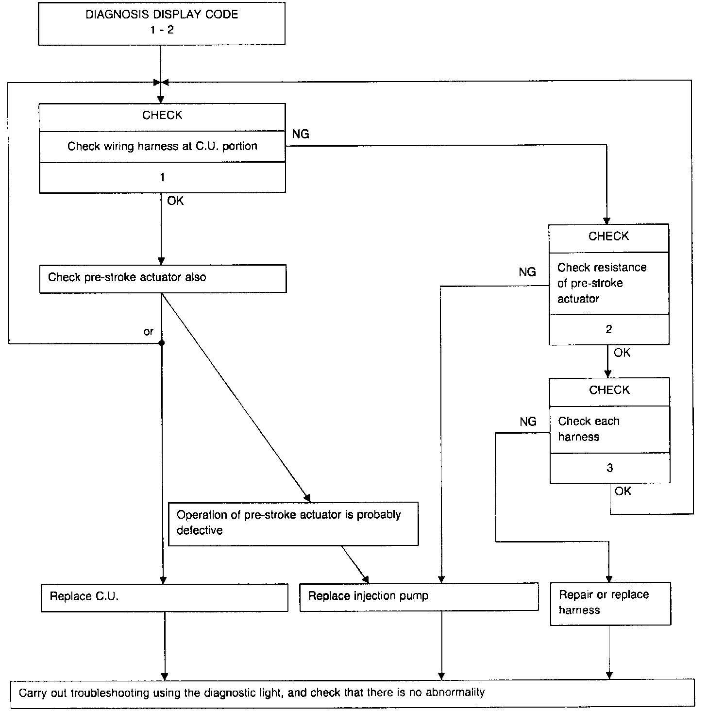 - Resistance is as specified -> pre-stroke actuator normal -> check harness -> go to [CHECK/3]