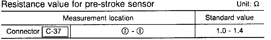 - Resistance value is not as specified -> pre-stroke actuator or harness abnormal -> go to [CHECK/2]