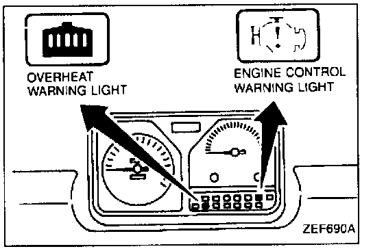 By using the diagnostic switch, the Diagnosis Display Code is displayed on the diagnosis light (Engine Control warning light and Overheat warning light), and trouble-shooting is carries out.