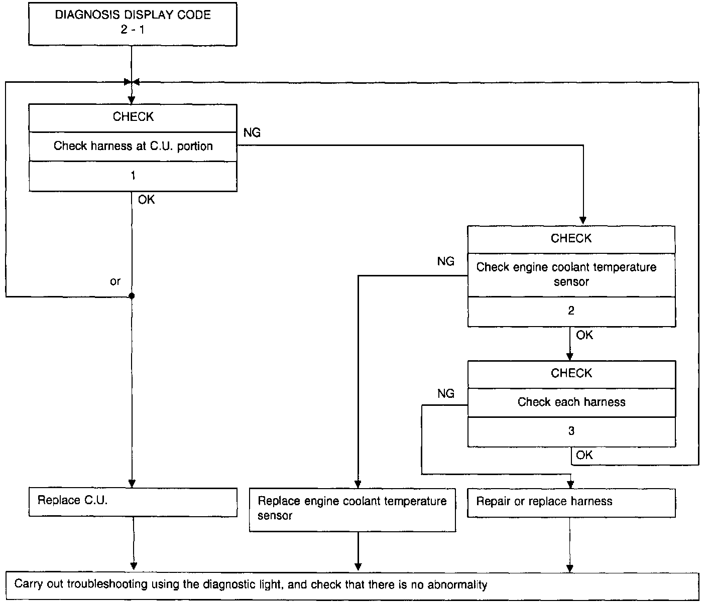NOTE: After completing each operation, carry out trouble-shooting with the diagnostic light and confirm that there is no abnormality.