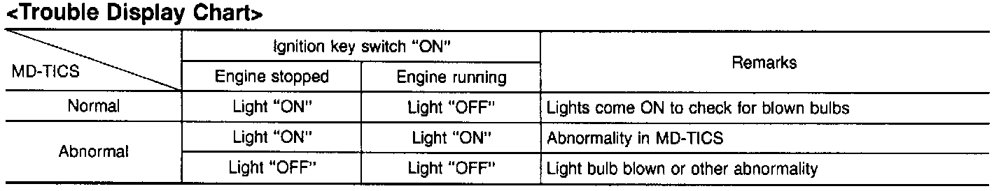 If it is judged that there is an abnormality in the MD-TICS system, the Engine Control warning light comes on to display trouble.