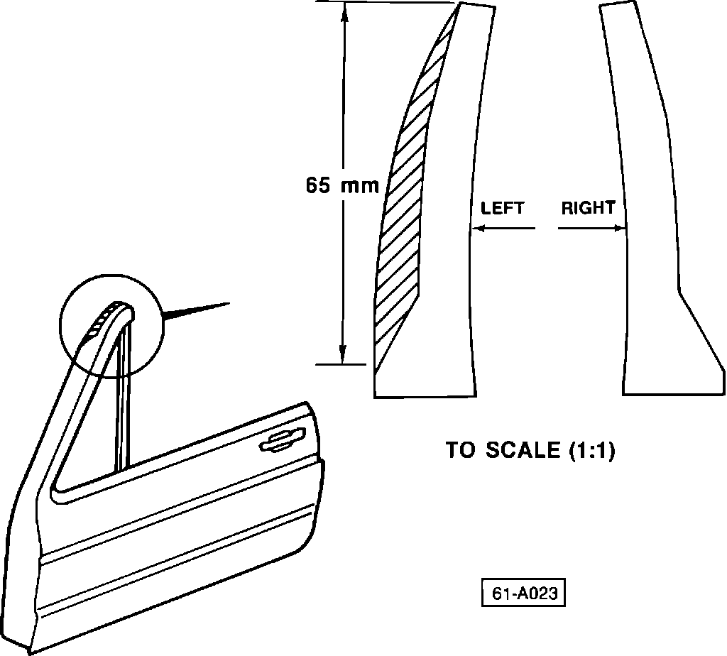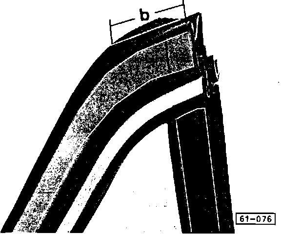 - pull seal off roof frame for a length of approx. 55 mm (2-1/4 in.) and seal contact surface in frame with sealant, Part No. AMV 176 000 05