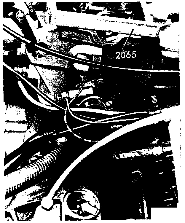 7. Install special tool 2065 as illustrated. Then hand-turn the camshaft until one end of the special tool touches the cylinder head. Use a feeler gauge to measure the gap between the top of the cylinder head and the bottom of the side of the special tool that is not touching the cylinder head.