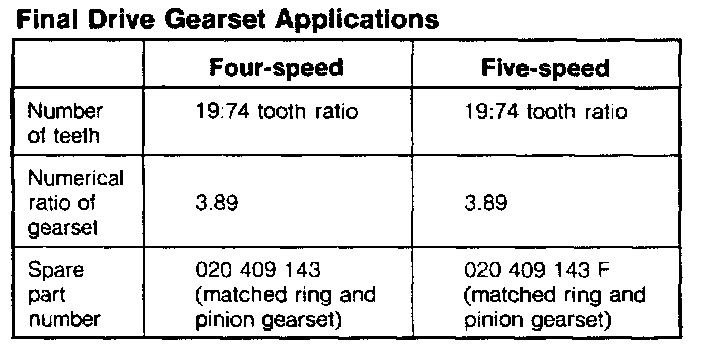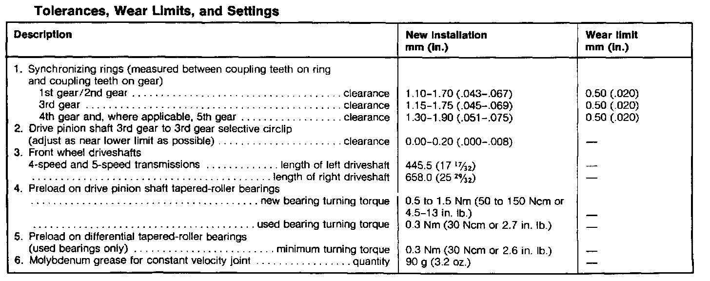 Manual Transmission SpecificationsFour Speed Manual Transmission Specifications: