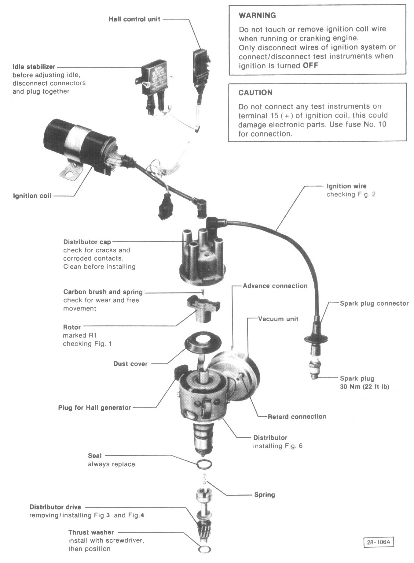 CAUTION: When working on vehicles with Hall ignition system, observe following precautions to prevent injury or damage to ignition system: