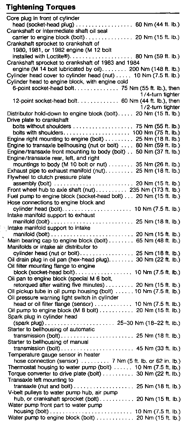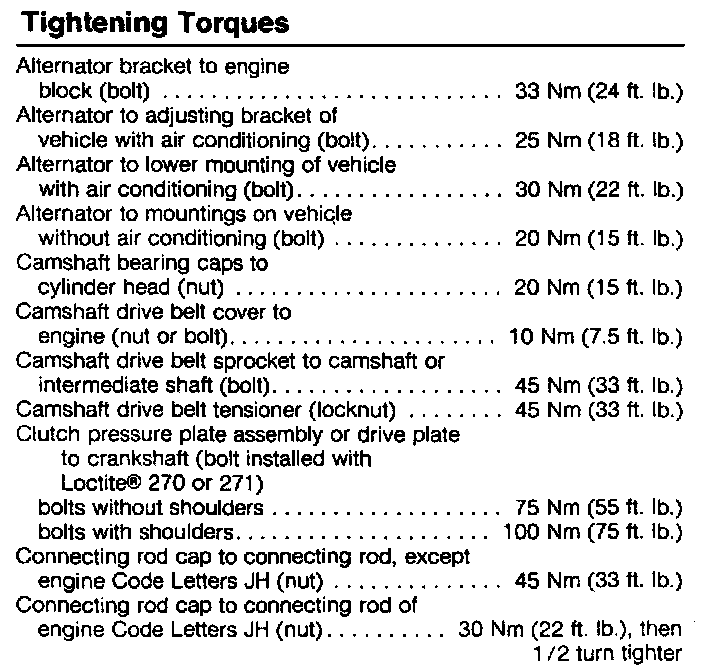 Engine Torque Specifications