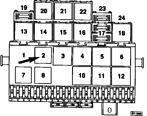 - remove fuel pump relay from fuse panel (see arrow, Fig. 2)