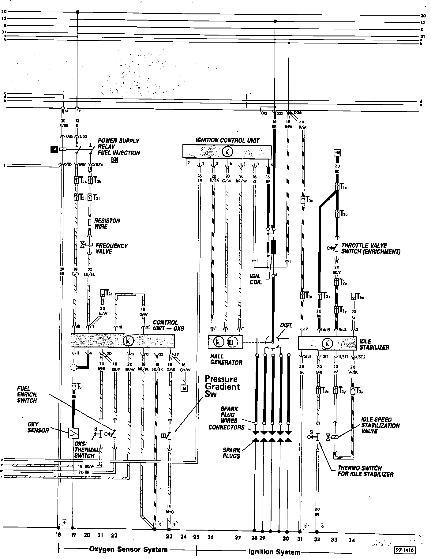 The OXS system on this vehicle uses a pressure gradient switch.. This switch signals the OXS control unit to operate the frequency valve at an ON/OFF ratio of 80% during warm up.