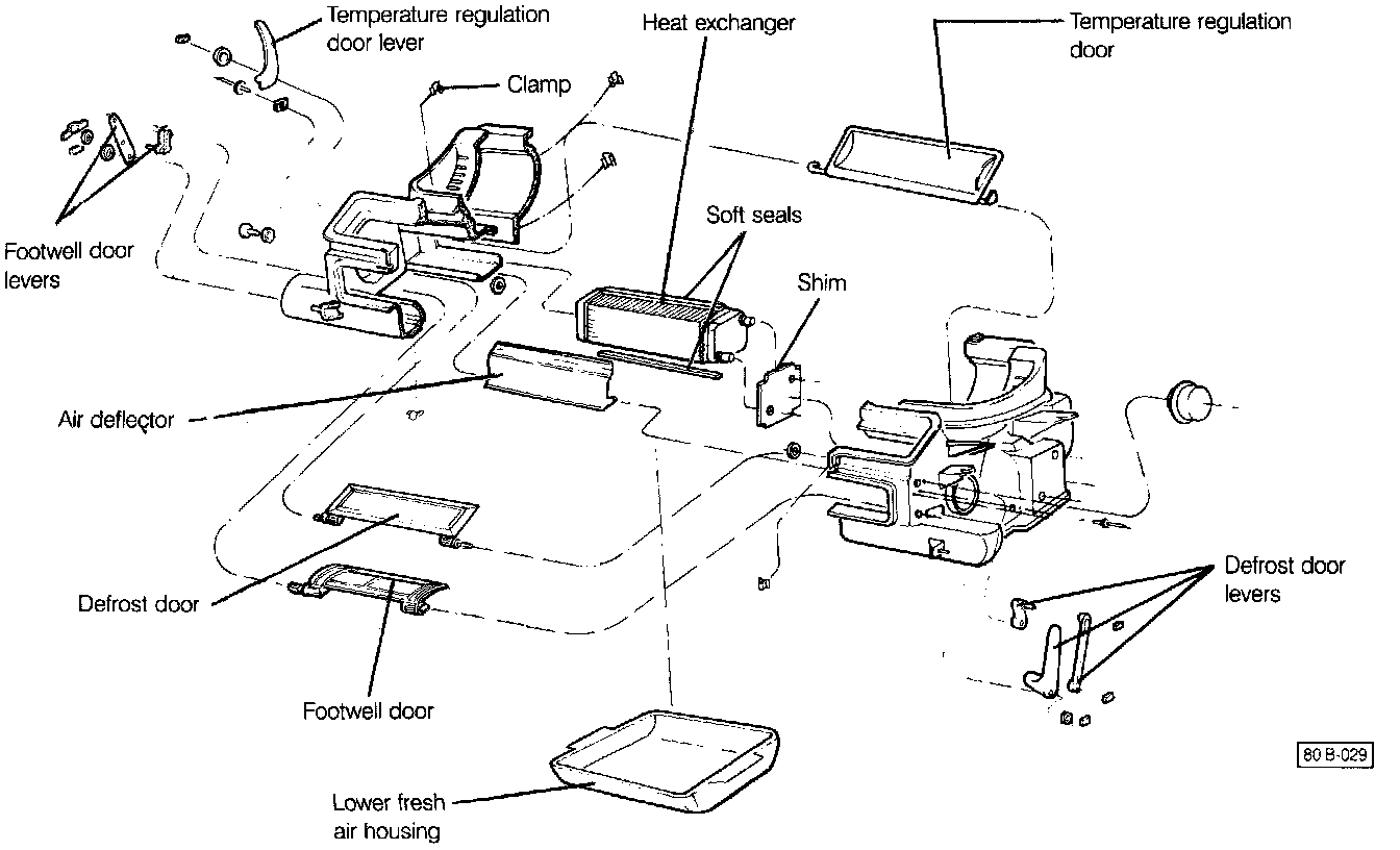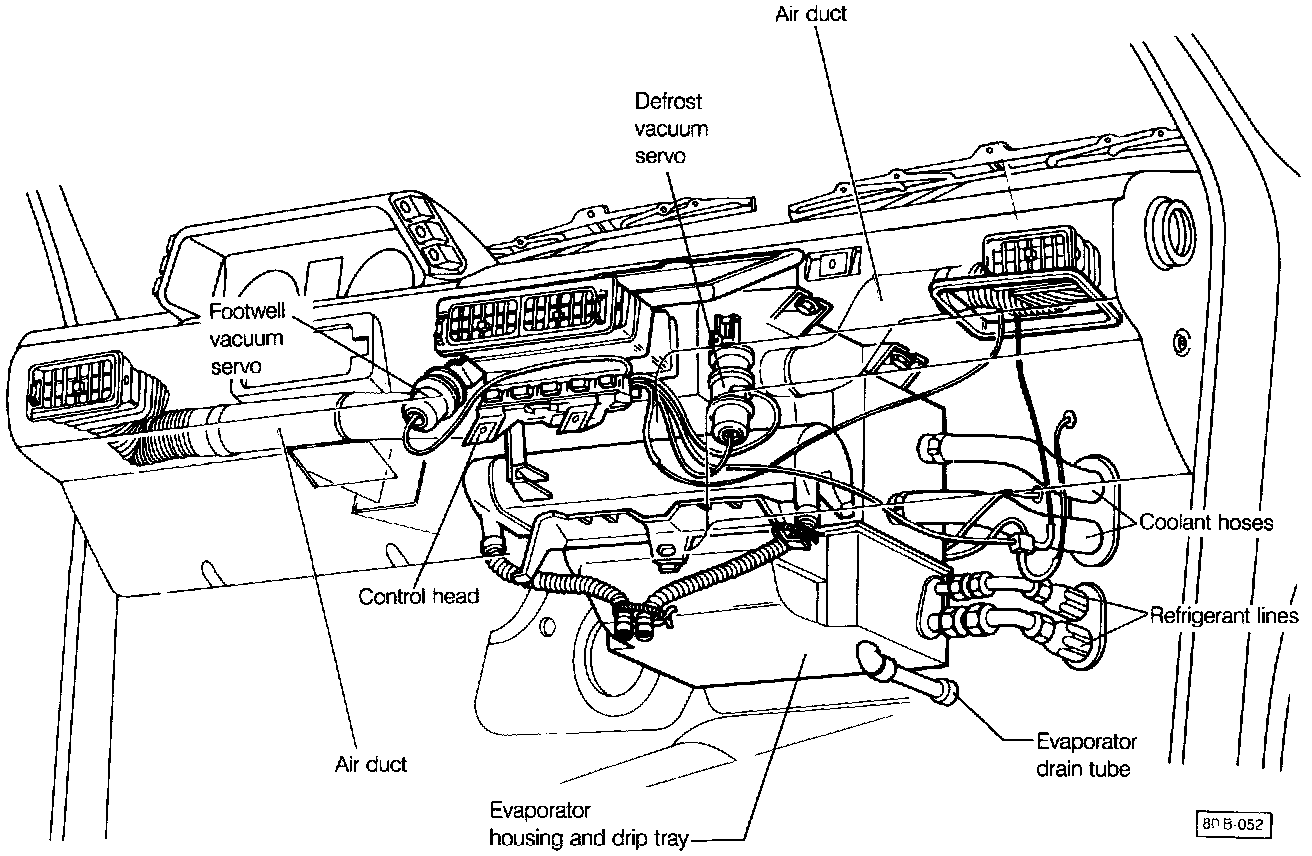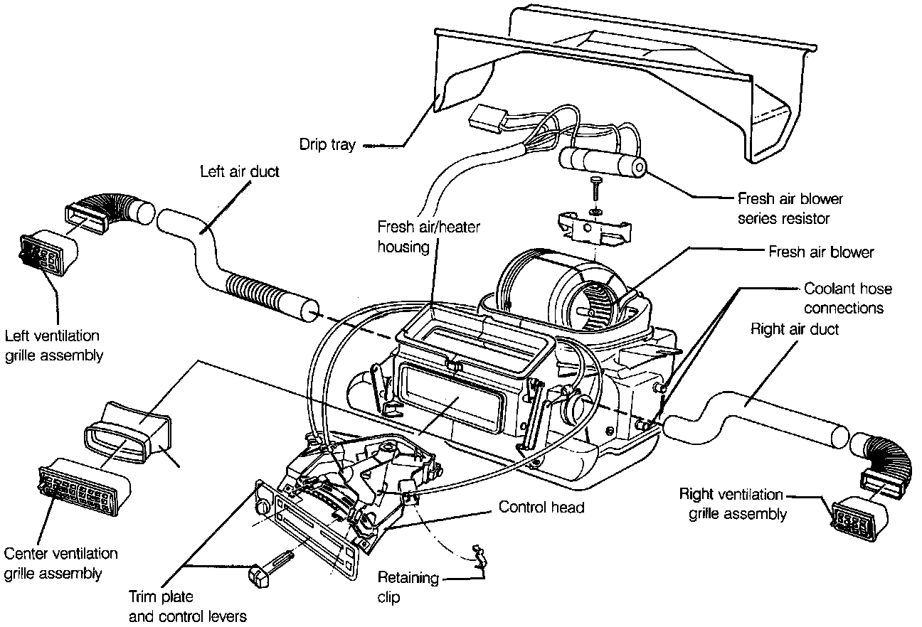 7. Remove the fresh air/heater housing assembly.
