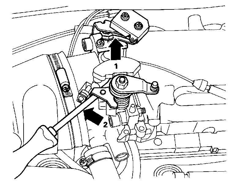 - While holding full throttle switch closed, SLOWLY open the throttle with a screwdriver (2) to increase engine speed.