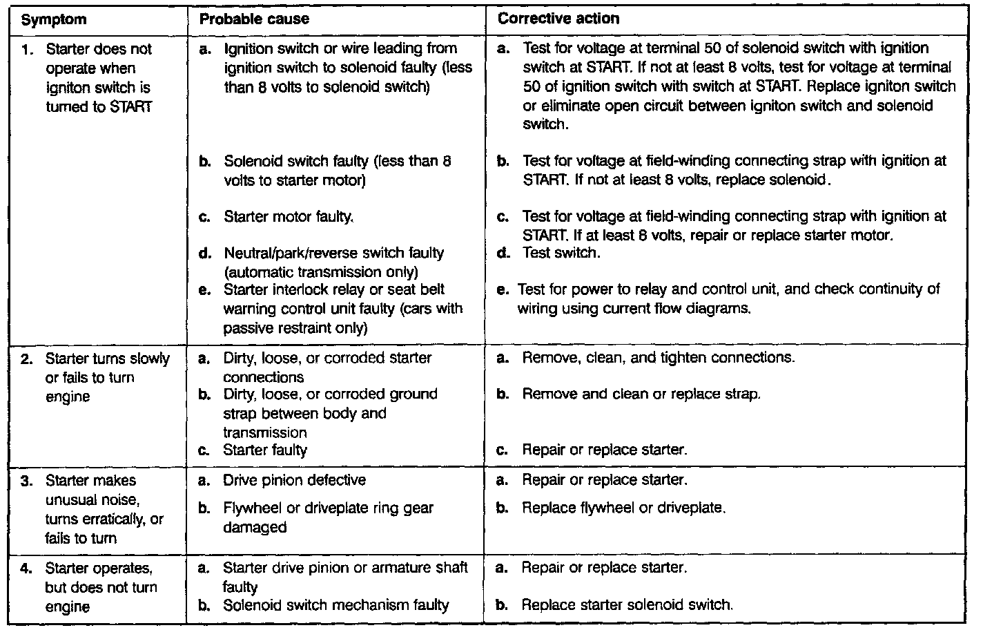 Starter Troubleshooting Chart: