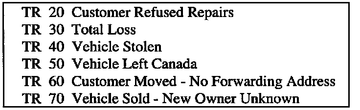 For vehicles which, according to your information are unreachable, please enter into the system one of the codes indicated , as applicable: