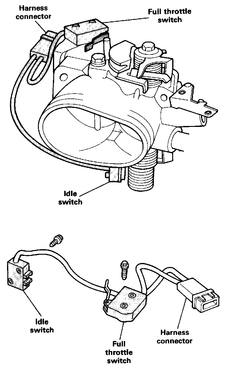 The idle and full throttle switches are wired in parallel. The switches are mounted on the throttle housing.