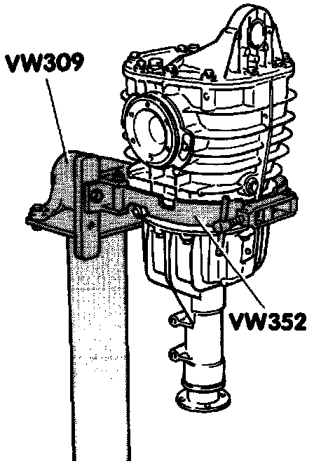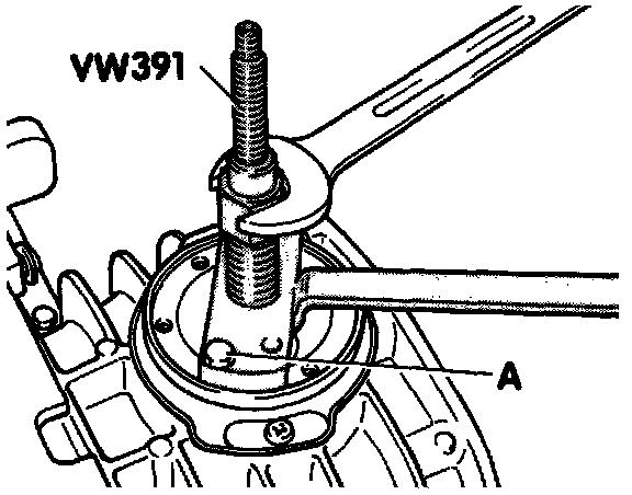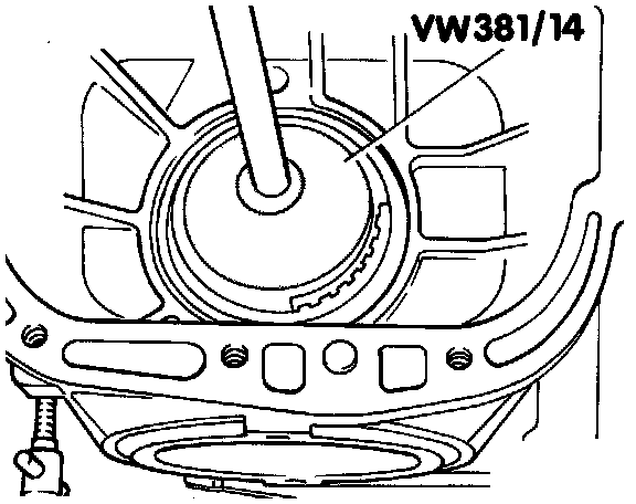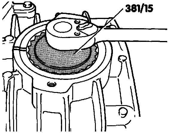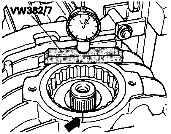 NOTE: Before starting repair work (which does not require final drive to be adjusted) mark position of adjusting rings on transmission housing. Measure depth to which they are installed with VW 382/7 and record readings