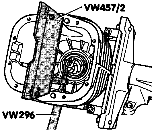 - Drill an additional 9.0 mm (0.35 in) diameter hole in bracket VW 457/2