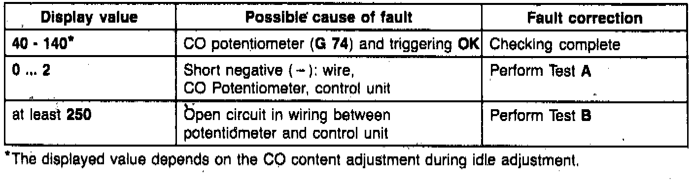 - triggering of CO potentiometer (G 74) OK