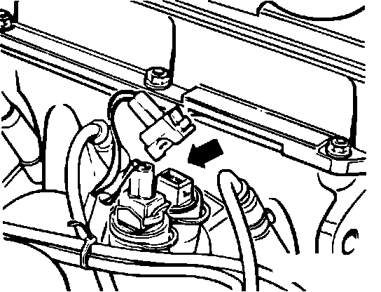 1. Disconnect the crankcase ventilation hose from the emission control valve on top of the cylinder head cover (valve cover), then plug the hose.