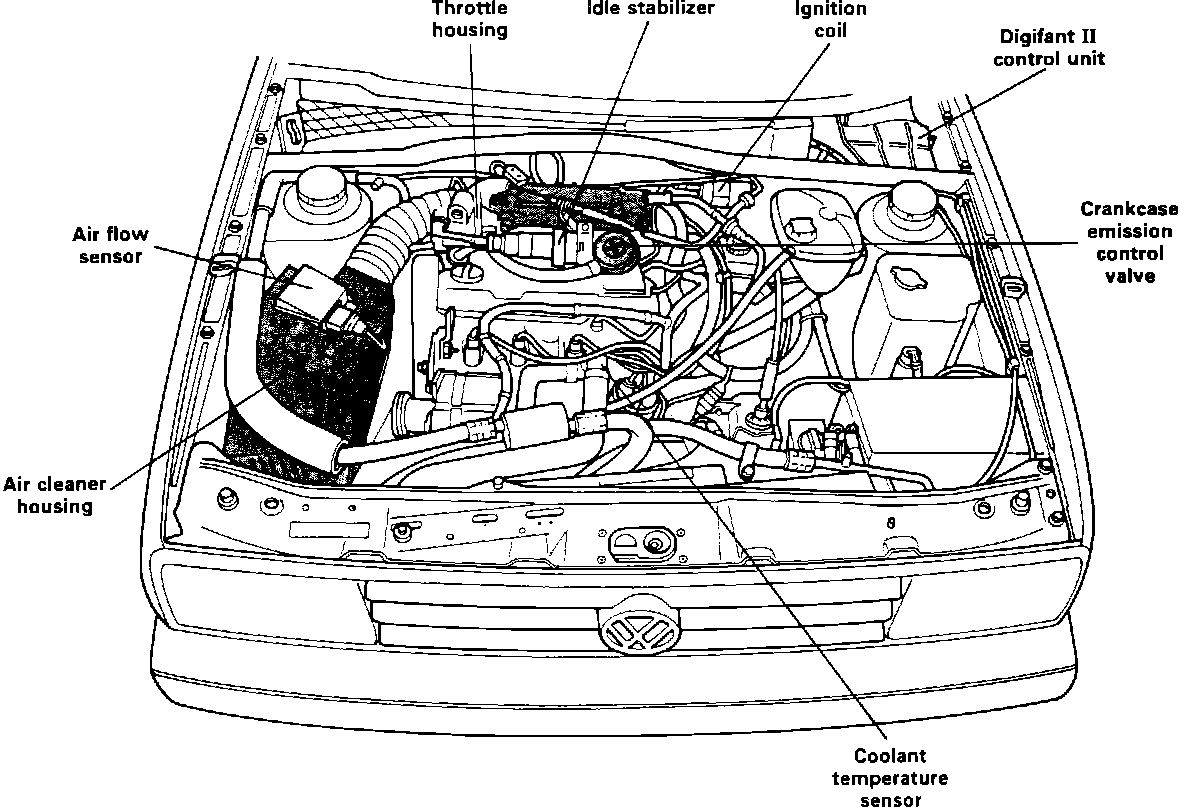 The Digifant II control unit is located at the left rear of the engine compartment under the drip tray.