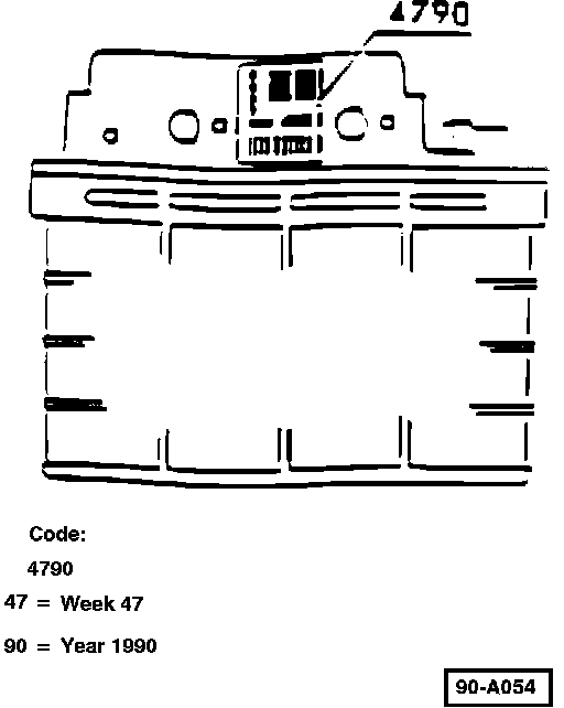 Visual identification of Digimat ECU for EPROM level may be established by noting production build code on silver label. (Note ECU silhouette)