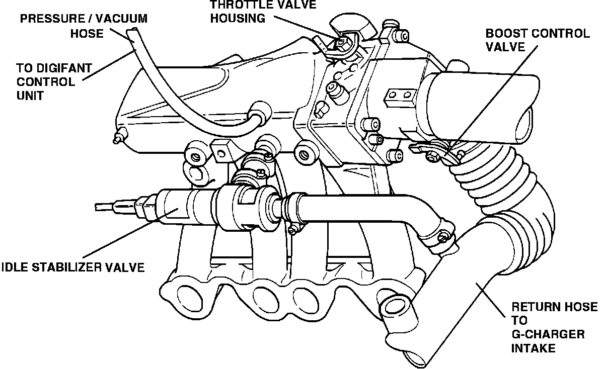 The idle stabilizer valve is located between the valve cover and the intake manifold.