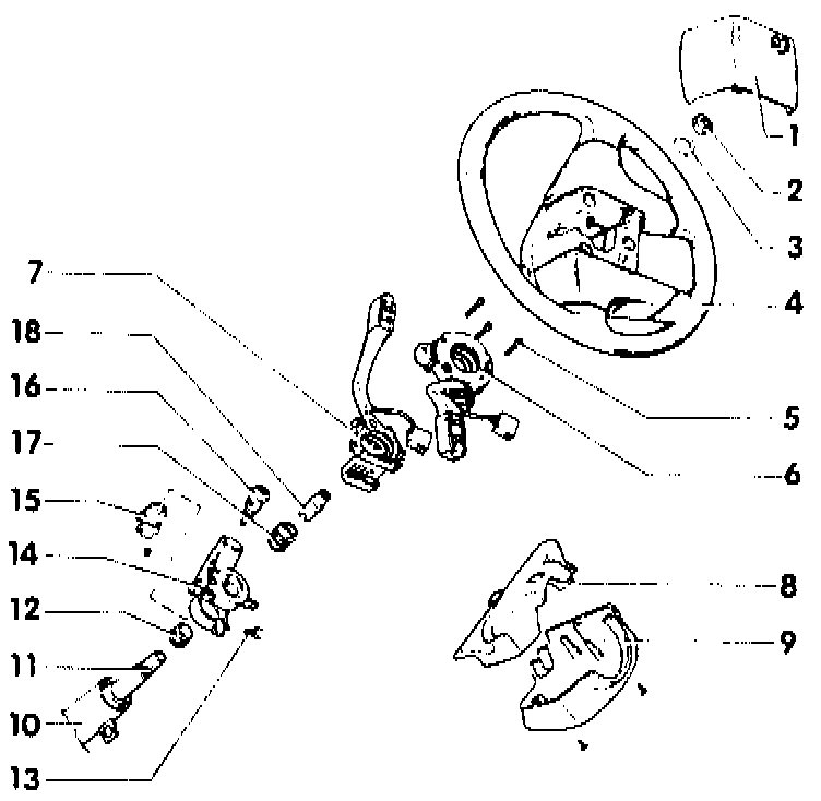 - remove turn signal (6) and windshield wiper/washer switch (7) from steering column
