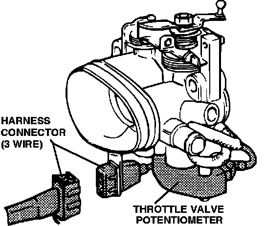 DIGIFANT I (CALIFORNIA), uses a throttle valve potentiometer, the potentiometer not only informs the ECU when the throttle is in the idle position but every position from idle to full throttle is monitored. The throttle valve potentiometer has a harness connector attached that contains THREE wires.