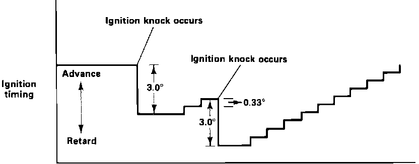 If knocking continues, the ignition point can be retarded up to 15° for an individual cylinder, however, it is limited to a maximum of 9° difference between cylinders.