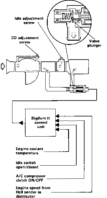 Idle speed is electronically controlled by the Digifant II control unit with relation to engine coolant temperature and engine load signals.
