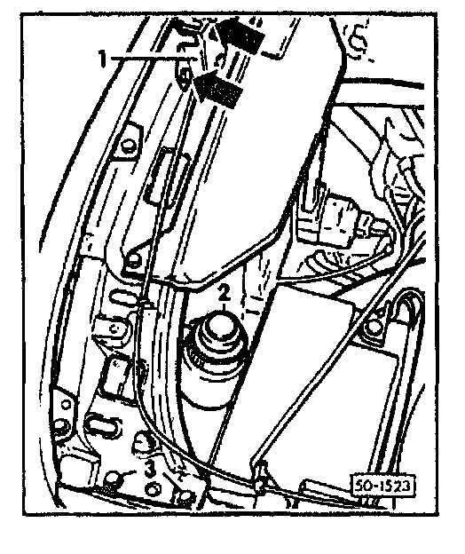 - Loosen securing clip for power steering fluid reservoir -2-.