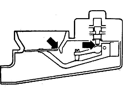 NOTE: Free play is the clearance between the control plunger and sensor plate lever (right arrow), measured on the side of the sensor plate closest to the fuel distributor (left arrow).