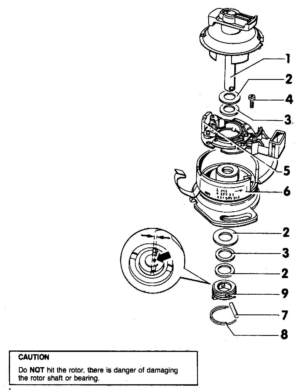 Note: The rotor is glued to the shaft. if the rotor has to be replaced, remove it by destroying it with a pair of pliers.