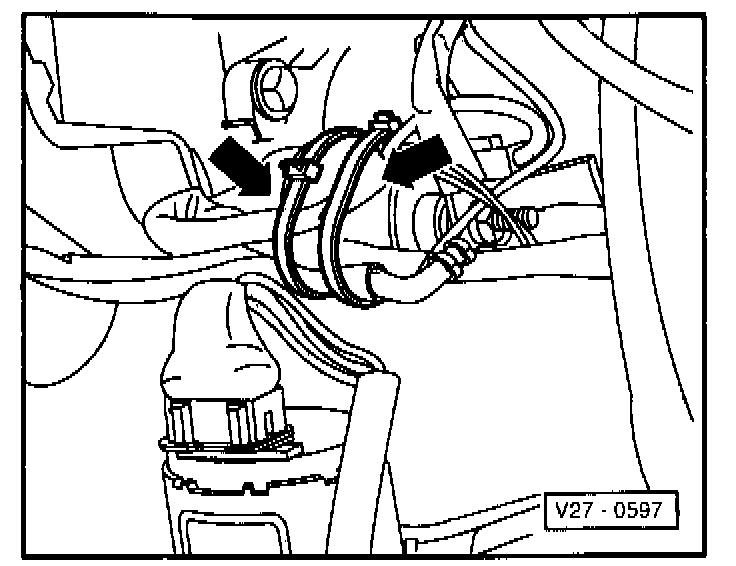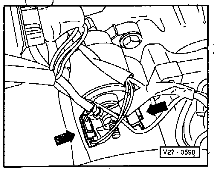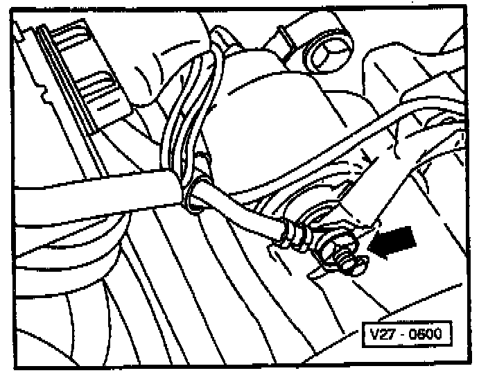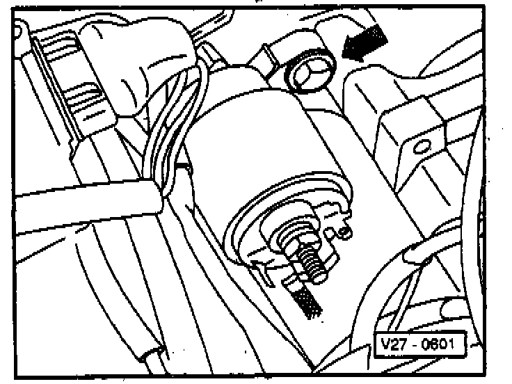 - Tighten securing bolt -arrow- to 60 Nm (44 ft lb).