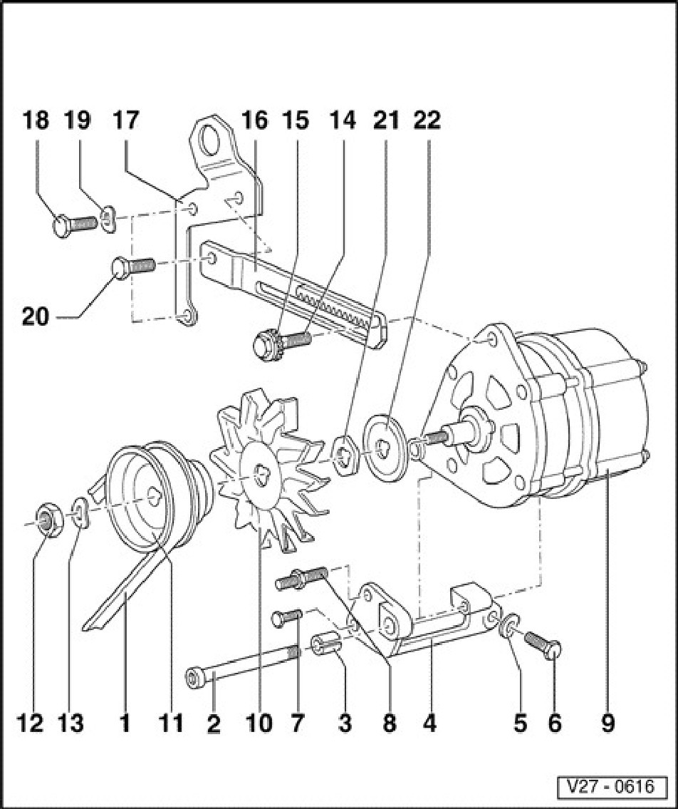 Generator, removing/installing, Generator (GEN) (V-belt)