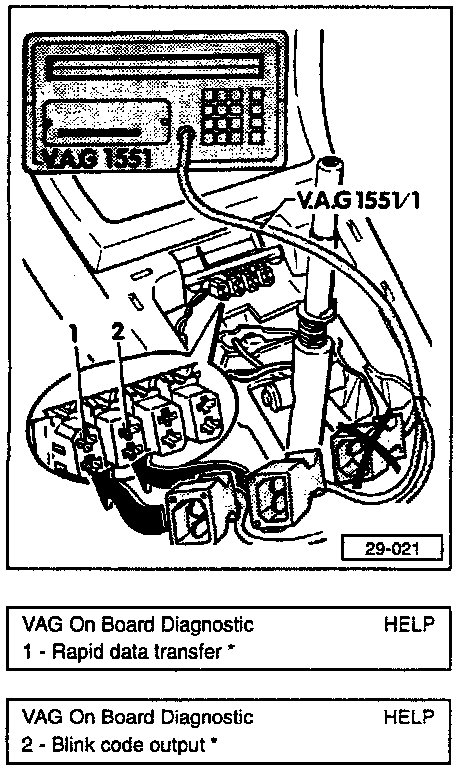 - connect Scan Tool VAG 1551 using adaptor cable VAG 1551/1 as follows: