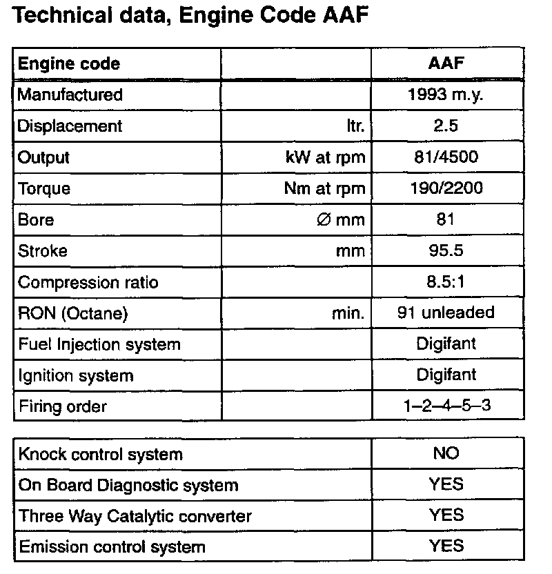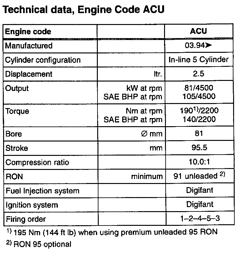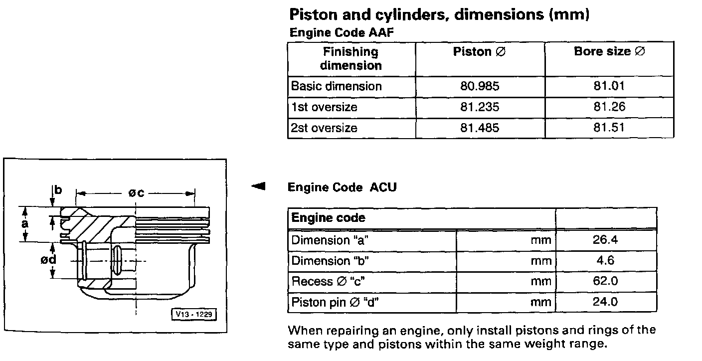 Piston And Cylinder Dimensions, AAF & ACU Engines: