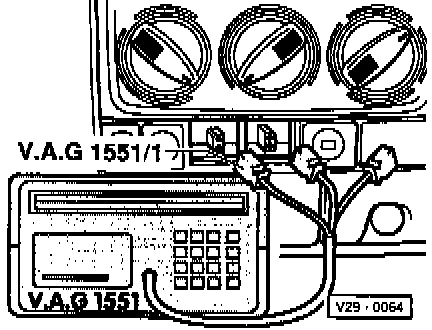 - Connect VAG 1551 scan tool with adapter cable VAG 1551/1 as follows: