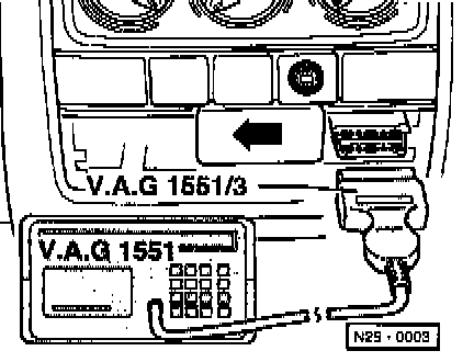 - With ignition switched off, connect VAG 1551 scan tool with adapter cable VAG 1551/3.