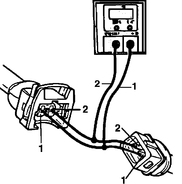 - Using a test harness that allows the temperature sensor to remain connected while testing (VAG 1594 or equivalent) connect multimeter to the connectors as shown, use wires long enough to allow multimeter to be placed on the passenger seat.