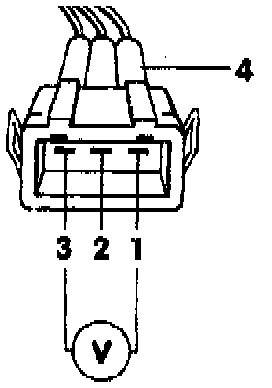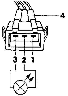 - Connect Fluke 83 multimeter with adapter cables from VW 1594 to measure voltage between terminals -1- and -3- of disconnected connector.