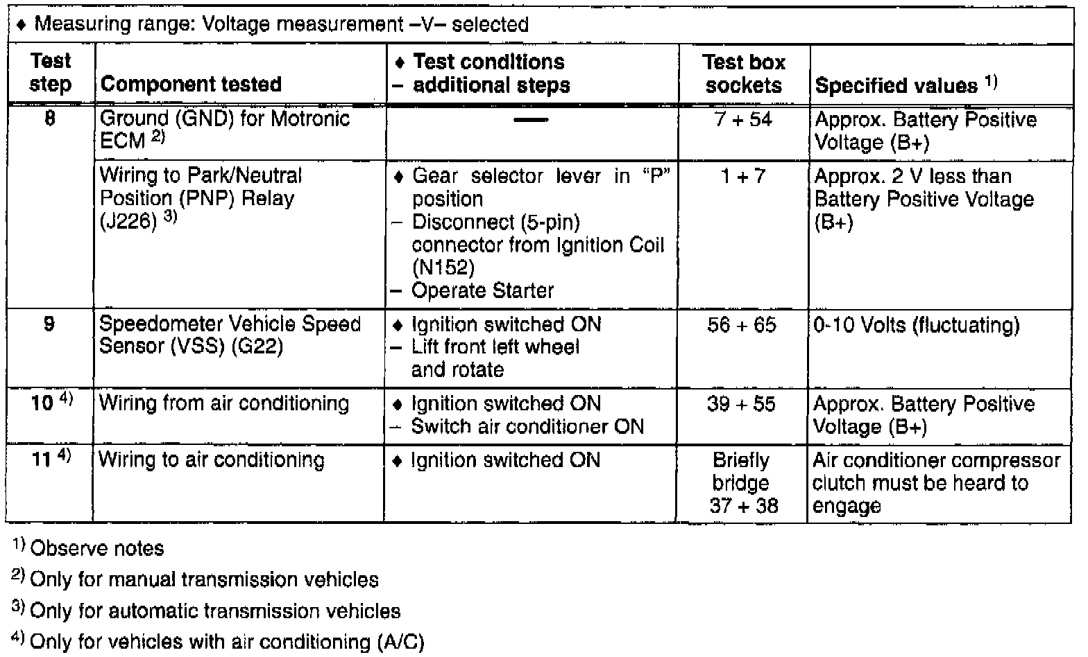 Electrical Checks Using VAG 1598 Test BoxREQUIREMENTS