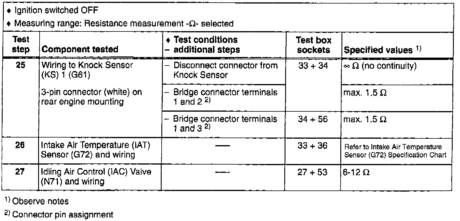 - Perform the electrical checks using the VAG 1598 Test charts.