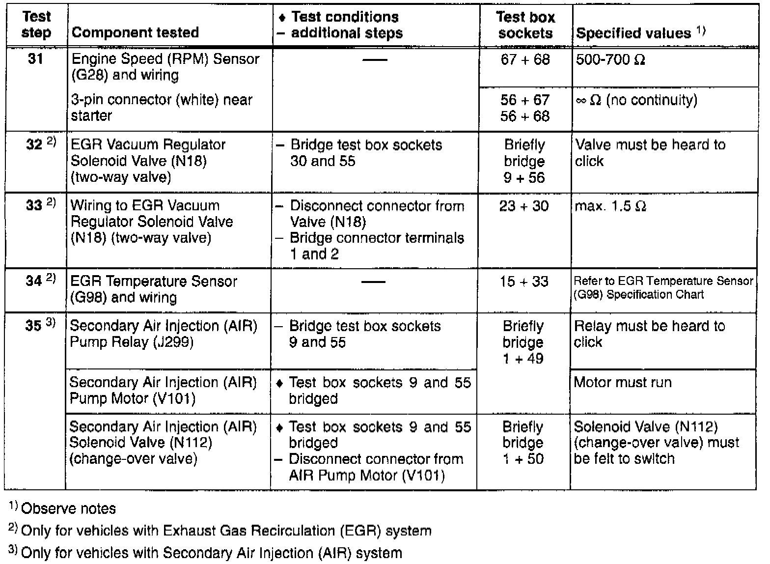 - Some test steps included in the following charts are for components that are not on all vehicles, i.e. EGR Sensor, Air Pump relay, etc.