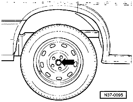 - Remove left-hand drive shaft/wheel hub bolt -arrow,