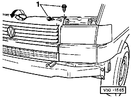 - Remove bolts -1- and fold radiator out in direction of arrow.