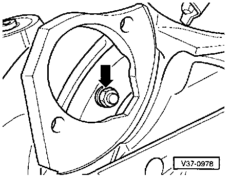 - Remove bearing housing securing bolt -arrow- to enable transmission mounting hook to be inserted.
