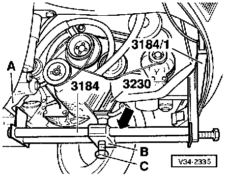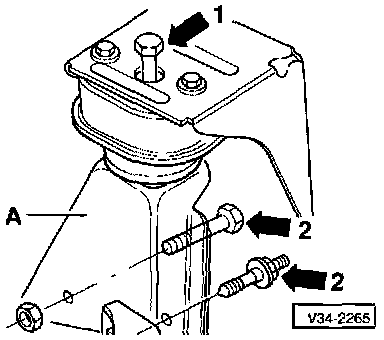 - Unbolt bearing bracket -A- from bonded rubber mounting at body -arrow 1 -.